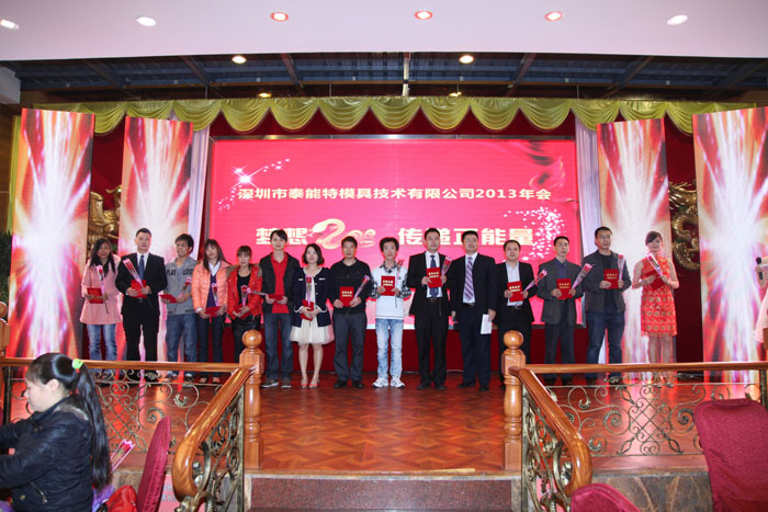 2013年元月30日,公司組織了“夢想2013 傳遞正能量” 2012泰能特公司年會 ,會上頒發了:2012年度優秀員工、先進集體、模具制造獎。