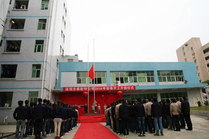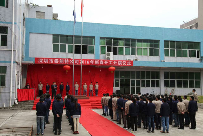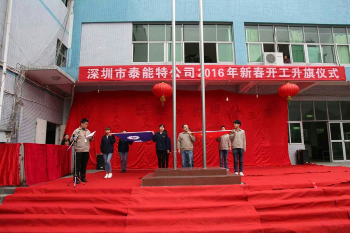2016年2月15日(農(nóng)歷正月初八),泰能特人帶著滿腔熱情迎來了一年一度的開工升旗儀式。早上8點(diǎn)全體員工早早的穿好工裝整齊的列隊(duì)在公司大樓的旗桿下,開工鞭炮響起,伴隨著<歌唱祖國>的嘹亮歌聲,全體員工靜靜的注目著國旗和公司旗幟在護(hù)旗手的護(hù)衛(wèi)下緩緩地走上升旗臺(tái)。隨著<中華人民共和國歌>和<深圳市機(jī)械協(xié)會(huì)會(huì)歌>的再次奏響,國旗和公司旗幟再一次迎風(fēng)飄揚(yáng)在公司升旗臺(tái)的天空。在新的2016年,泰能特將繼續(xù)秉承“品質(zhì)、納期、服務(wù)、成本”的經(jīng)營方針理念,為員工提供更加舒適的生活環(huán)境,為客戶提供超值服務(wù),為社會(huì)承擔(dān)責(zé)任,創(chuàng)造價(jià)值!