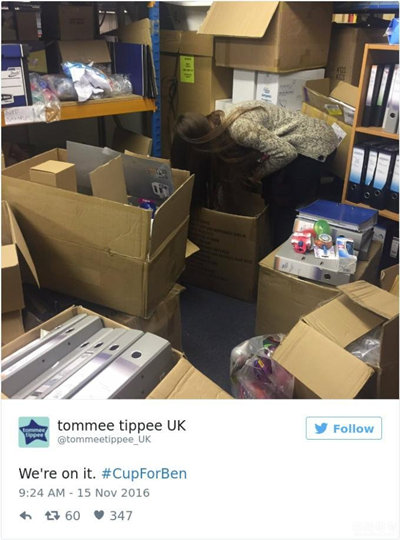 這場愛心接力很快引起了水杯生產(chǎn)商Tommee Tippee的注意。Tommee Tippee在推特上回應(yīng)說:“我們已經(jīng)組織了一隊人幫忙尋找本的同款杯子。”瞬間感覺找到了一個和泰能特模具一樣有愛心的企業(yè),員工在倉庫尋找杯子,一番波折后,工作人員終于在中國的工廠里找到了生產(chǎn)這款杯子的模具!這款杯子是20年前的產(chǎn)品,但為了本,他們決定給他單獨(dú)生產(chǎn)500個杯子。Tommee Tippee表示:“這些杯子足夠本用一輩子,家人不用再擔(dān)心找不到杯子了?!?br />