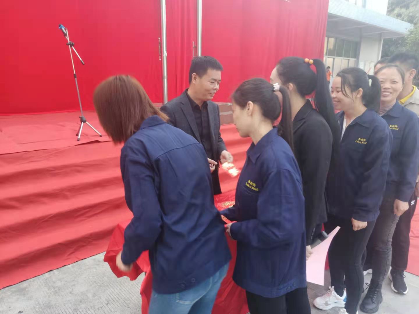 公司領導向全體員工派發新年利是