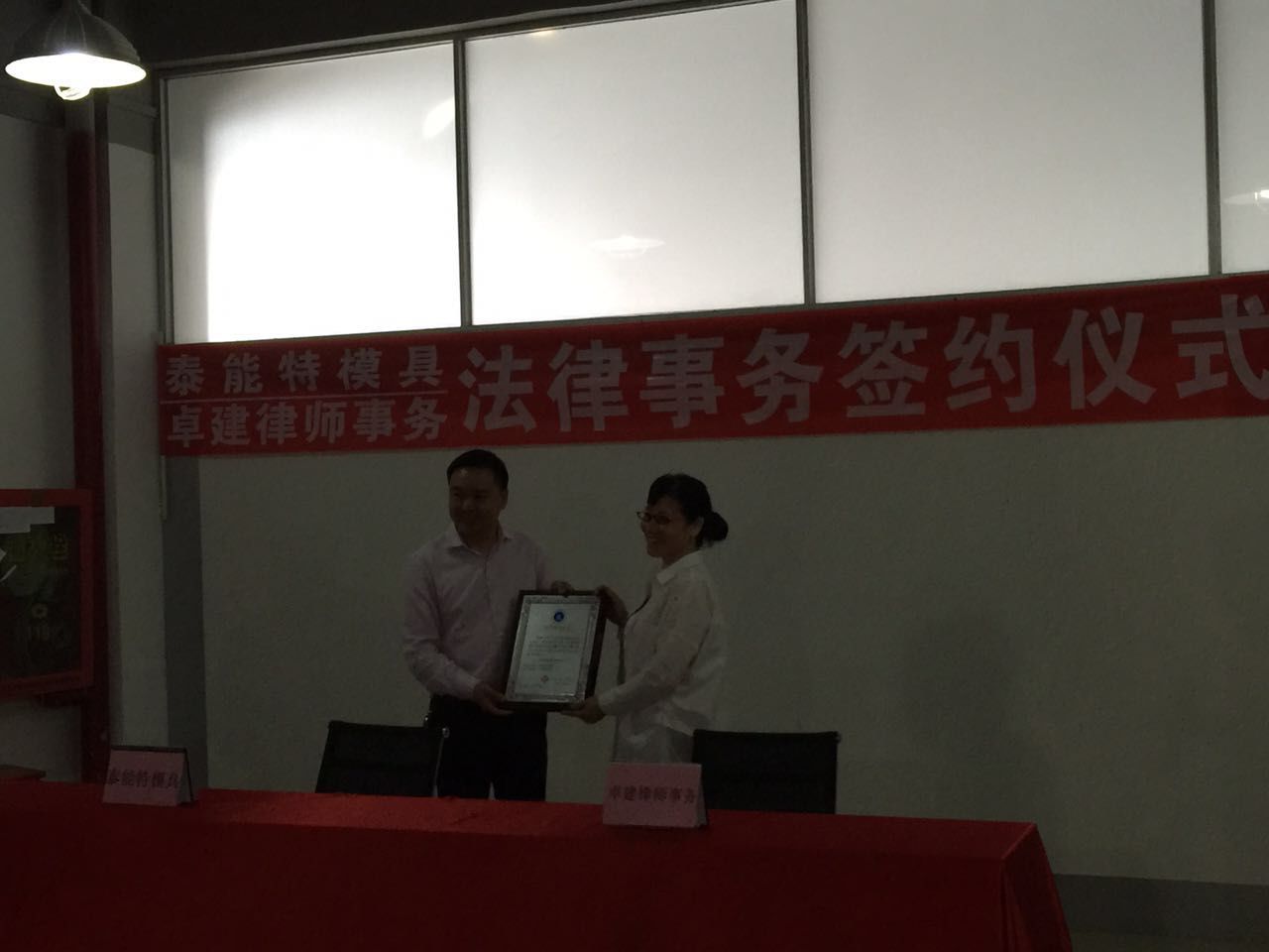 本次簽約,一方面是順應國家依法治國的大趨勢,同時也是謀求公司更好更快發展的需求,為公司的經營提供有效的法律保障。卓建律師事務所是一家規模龐大實力超強的律師事務所,如今卓建事務所已有200名律師共同共事,與這樣實力雄厚的律師事務所簽約是我們泰能特模具技術有限公司的又一大優勢,與卓建律師事務所簽約很好的證明我司是一家嚴守法律的公司,實際的向外公證泰能特是一家值得信賴的優良企業。